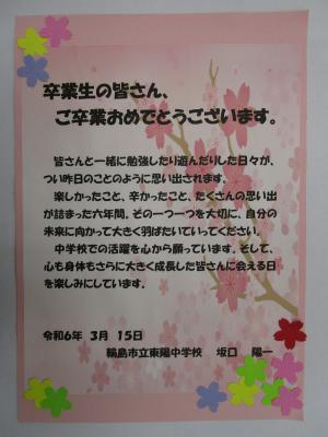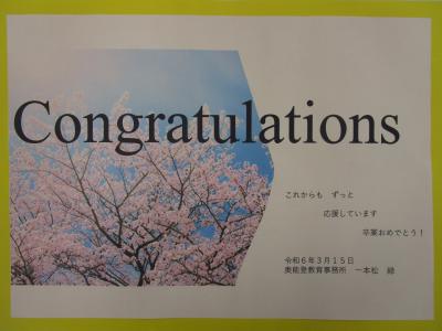 29名の卒業を祝う手作りのメッセージが届けられました♪