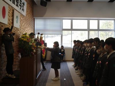 昨年度新調された校旗や手作りのお祝いリボンも、式を彩りました♪