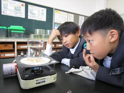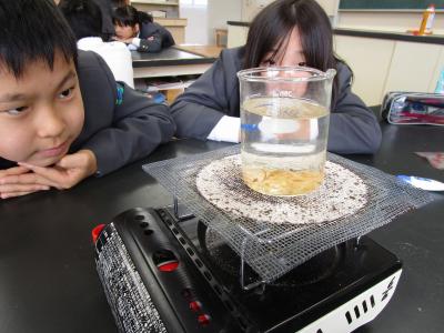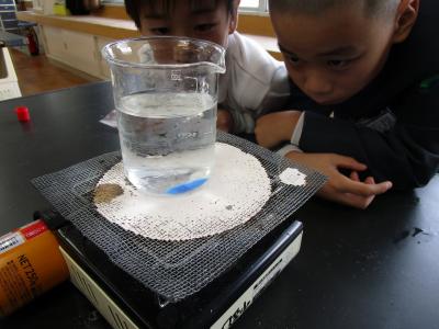 今日は、水はどのようにして温まっていくのかを調べる学習。