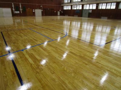 体育館の床が、全て磨かれていました。