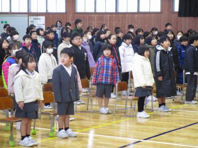 寒い体育館での終業式でしたが、6年生のピアノ伴奏も、ピアノ伴奏に合わせた校歌の歌声も、とても素敵でした。