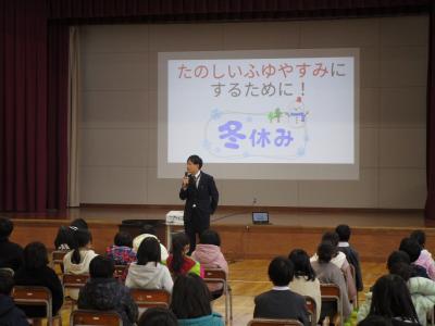 各学級で冬休みに関わる連絡などを担任の先生と確認した後、終業式を行いました。
