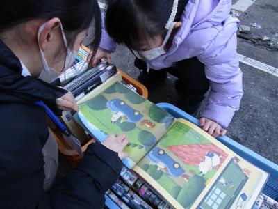 いくつかの避難所には、図書室の本や、けん玉・お手玉・めんこなどの昔の遊び道具を、先生がもっていきました。