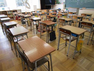 教室の机と椅子が整えられていました。