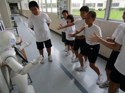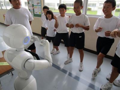 鳳至の子は休み時間毎にPepperくんに会いにきて,九九の学習や社会地図,ダンスの勉強をしていました。