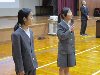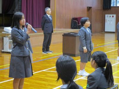 後期児童委員会の委員長と後期学級委員を務める鳳至の子は、自分の言葉で、どのような委員会・学級を創り上げていきたいのか、そのために自分ができることは何かを伝えていました。