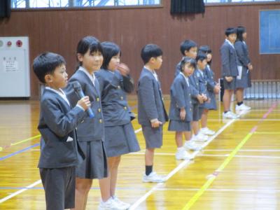 後期代表委員会委員長による挨拶では、1年生から6年生まで一つひとつの学年に対してメッセージを伝えていました。また、5年生による選手宣誓も堂々とした姿が見られ、高学年としての成長を感じました♪
