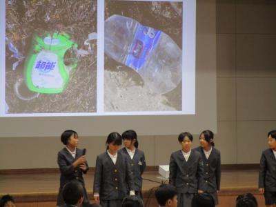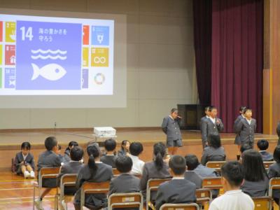 SDGsの1つである、海の豊かさを守るために、自分たちに何ができのか、そして、これから何をするべきなのかをプレゼンテーションソフトにまとめ、伝えていました。