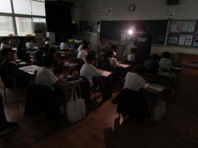 この状況を貴重な学習の場としてとらえ、避難方法を確認したり、停電になってもできることは何かを考えながら授業を進めていたり、雨や雷について学んだりしていました。