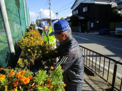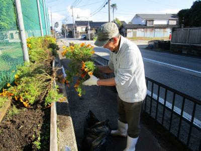 2023年10月30日 14時25分今日は、秋晴れのもと、地域のボランティアの方々による「通学路沿いプランターの環境整備(土づくり)」が、行われました。