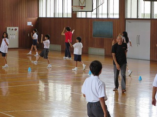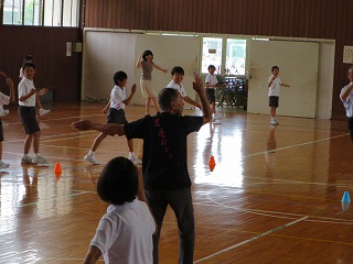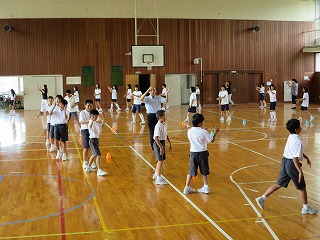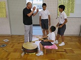 2015年6月29日 13時37分三夜踊りのお囃子の練習とともに、体育館では5,6年生及び職員による踊りの練習をしています。