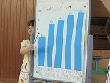 保健委員会の発表は、「鳳至小学校虫歯ゼロ」という大きなテーマについて考えを深めることのできる分かりやすい内容でした。棒グラフを上手く使用し、現在の虫歯状況や治療状況を丁寧に説明してくれました。