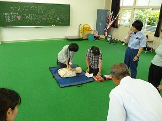 輪島消防署の方の指導により,4年連続となりましたが,やはり,いざとなると腰が引けるものです。また,胸部圧迫を2分間続けることの大変さを,改めて実感しました。