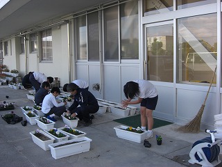 11月19日水曜日の昼休みに環境委員会がパンジーを植えました。