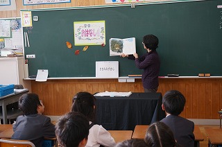 今回、1年生は、たんぽぽ文庫の講師の方をお呼びして紙芝居やおすすめの本や学習に関連した本など紹介していただきました。