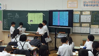高学年から低学年への読み聞かせがあり、高学年は1週間はど練習した成果を低学年に披露しました。