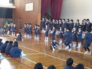 その後に、1年生の学年発表がありました。「キラキラ星」の合奏と「やさしい心つかまえて」の合唱をしました。