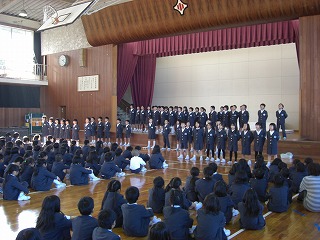 次に「歌え バンバン」を合唱しました。2年生らしく、とても元気な歌声でした。
