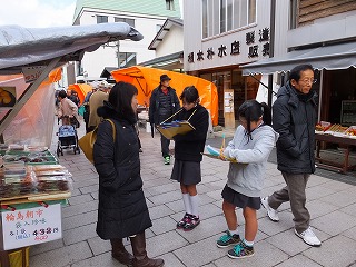 4年生がインタビューしている目的は、朝市の観光客が減っているのはなぜか?ということを調べるためです。