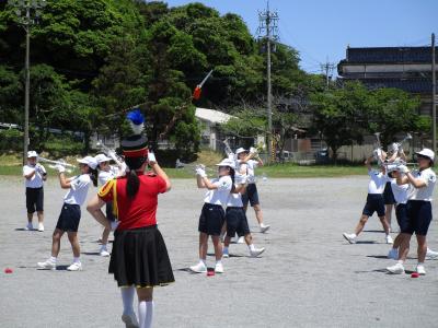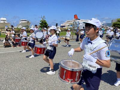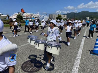 昨日のマリンタウンでのドリル練習に続き,鳳至小学校周辺のパレード練習を実施しました。