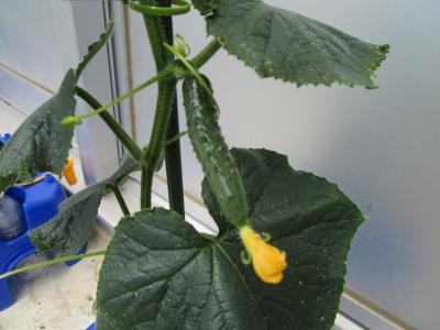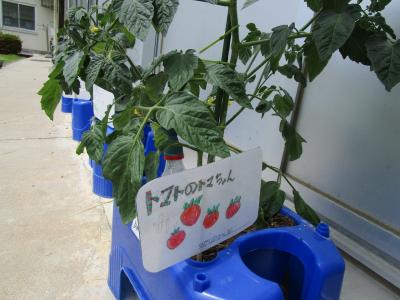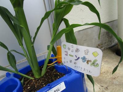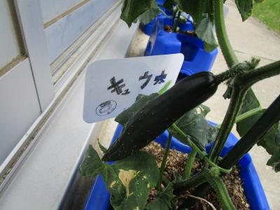 トマトのトマちゃんと,トウモロコシのコーンちゃんは実をつけるまでもう少し時間がかかりそうですが,きゅうりの「キュウ太」は,実をつけています。