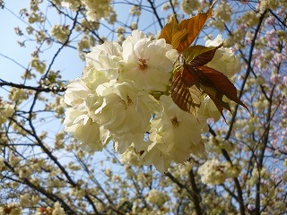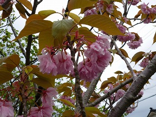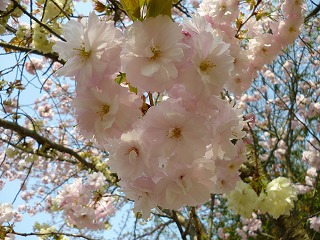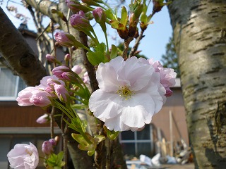 一口に「桜」と申しても,本当にいろんな種類がありますね。でも,そのほとんどが,野生種ではなく栽培種(品種改良で作られた種)だそうです。我が家では今,「楊貴妃」が満開です。