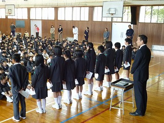 前期の学級委員(学級代表)と委員会委員長の任命式がありました。