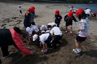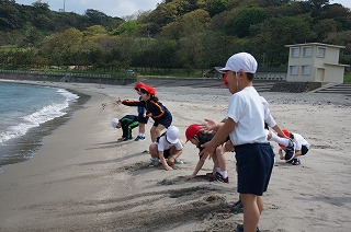 袖ヶ浜で波と戯れ,みんなで砂遊び!!
