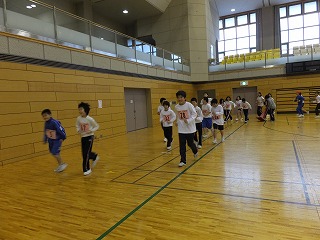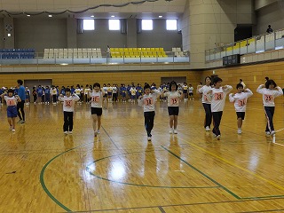 生憎の雨模様のため,屋内(一本松総合運動公園体育館)にて練習をしました。