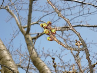 桜のつぼみも伸び進み,見間違えるほどになっていました。