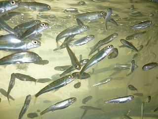 水槽の中の「シャケ」達は,6年生より少し早く明日(3月11日)に,学校から巣立ちます。