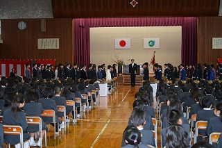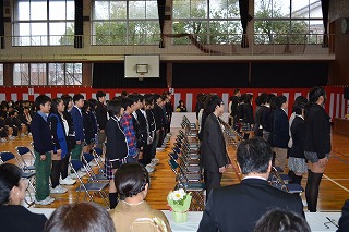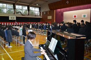 生憎の雨模様の中,しめやかに第43回卒業式が行われました。