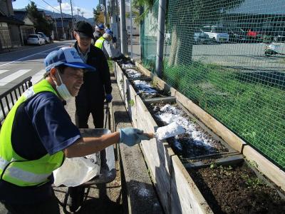 2022年10月14日 18時00分本日14日,通学路沿いプランターの土づくりが行われました。