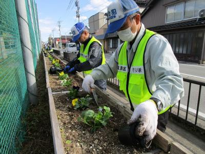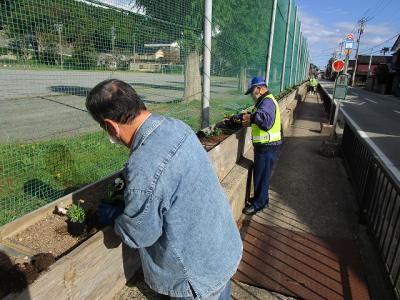 通学路沿いプランター花植え