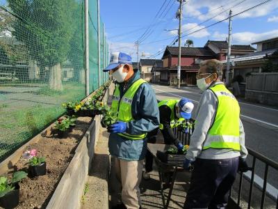 2022年10月25日 10時24分10月24日(月)に通学路沿いプランターの花植えが実施されました。