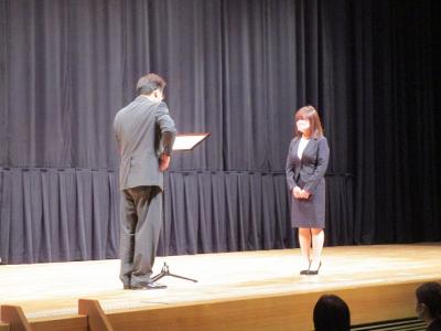 また,輪島市PTA功労者表彰が行われ,本校PTAからは,PTA副会長・母親代表の萬正さん,PTA副会長の加川さんが表彰されました。おめでとうございます。