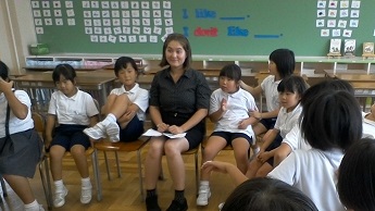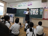 今日は2学期最初のEnglish dayでした。新しいALTのシンシア先生を迎え,一緒に学習をしたり交流をしたりしました。今日は朝から全校で英語であいさつをしました。“Good morning!" "Hello!"と声をかけると英語で返してくれました。また,昼休みにはシンシア先生と交流会を行いました。先生の自己紹介を聞いて質問をした後,自分の名前を言いました。一緒に歌を歌ったり,サインをもらったりもできました。自分から関わろうとしている児童が多くて嬉しかったです。