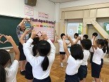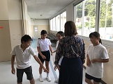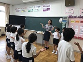今日の昼休み,English roomではシンシア先生に英語の歌を教えてもらいました。フラの一種で手で動きをつけながら歌いました。上手に真似をしながら歌うことができました。また,7月の今月の歌「きらきら星」を英語で一緒に歌うこともできました。とても上手に歌っていました。