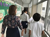 6年生では,道案内をする学習をしました。ゴールの活動としてグループごとにシンシア先生を様々な教室に案内しました。シンシア先生は今回が鳳至小学校3回目なので,知らない教室がたくさんあったそうです。6年生の案内が上手でわかりやすかったとほめてくださいました。どのグループも英語にジェスチャーを交えて一生懸命コミュニケーションをとろうとしている姿が見られてよかったです。体を動かしながら学習することで理解も深まったようです。