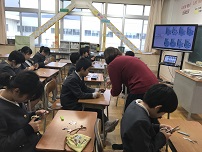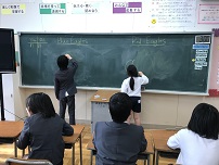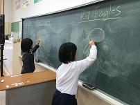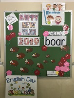 2019年1月11日 17時00分今日は3学期1回目のEnglishdayでした。昼休みの交流会では,グループ対抗のお絵かきクイズ大会を行いました。お題の絵をかき,グループのメンバーが当てます。英語で答えられたらポイント2倍です。最後にはシンシア先生からいのししのシールのプレゼントがあり,全員が満足して終えることができました。今年も楽しく英語を使うことを目標にEnglishdayでの活動を行っていきます。