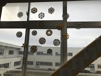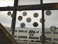 5.6年生では,ALTのシンシア先生とSnowflakes作りを行いました。アメリカの文化について教えてもらい,冬の飾りを作りました。作業しながらクリスマスソングを流すと口ずさみながら楽しく活動していました。作ったSnowflakesはEnglishroomにかざりました。さすが高学年!どの作品もとてもきれいでした。