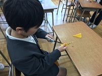 今日の昼休みにはEnglishroomで交流会を行いました。久しぶりの交流会でしたが,低学年を中心にたくさんの児童が来てくれました。シンシア先生に教えてもらいながらSnowflakesを作りました。どんな作品ができるかわくわくしながら作っていました。できた後はとてもうれしそうでした。