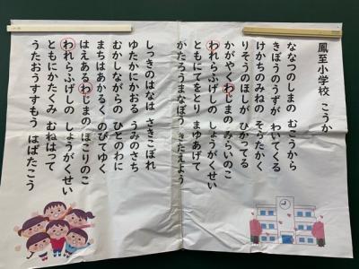 1年生は、音楽の時間の初めに、校歌を練習しています。回数が増すごとに、だんだん歌えるようになってきました。1学期の終業式にしっかり歌えるよう頑張って覚えます!