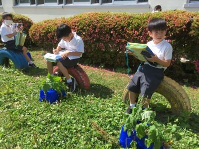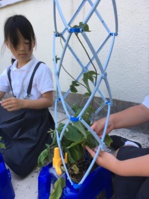 子どもたちが大事に育てている朝顔。