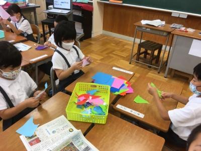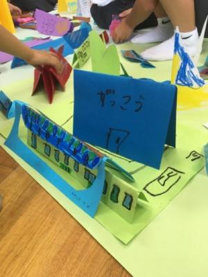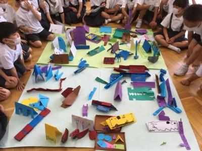 先週、画用紙を折った作品をみんなで並べました。