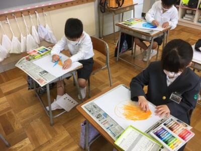 1年生の描いている絵を見て、6年生が「懐かしい!私たちも描いたよねー」と話していました。嬉しいですね♩