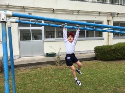 今日は得意なお友達をお手本にして、たくさんチャレンジしました!作戦名は「足ぶらぶら星人」です。ぶら下がることしかできなかった子が、一段、二段…と、少しずつできるようになりました。あきらめずチャレンジできる姿が素敵でした!