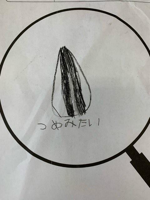 朝顔の種と比べると色も形も違うことに面白さを感じていました。