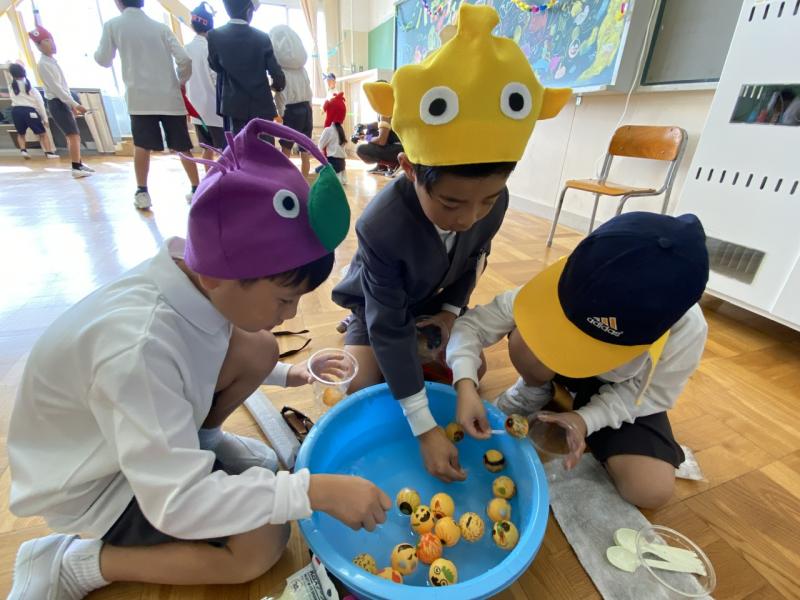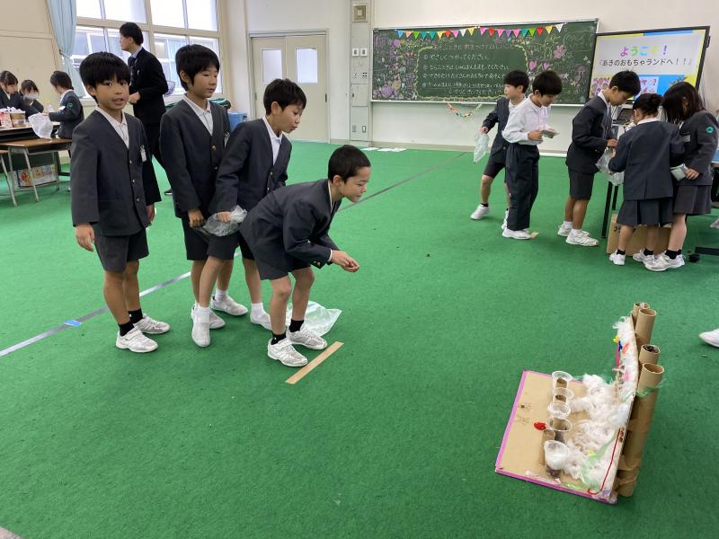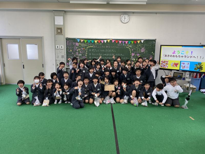 本日、1年生が秋のおもちゃランドに招待してくれました!秋のものを使ったおもちゃやゲームで、2年生をおもてなししてくれた1年生。2年生は、とても楽しそうに全てのおもちゃで遊んでいました!
