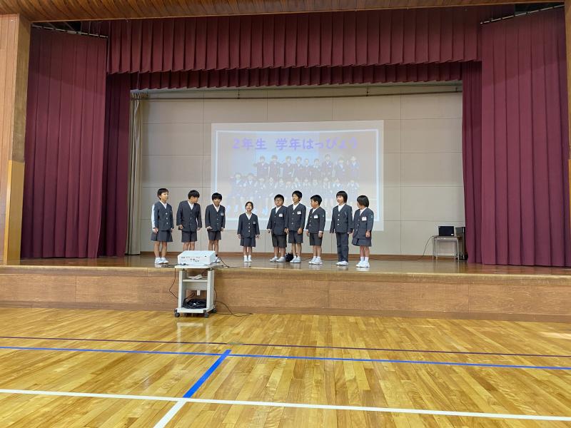 本番は、とても緊張していましたが、2年生らしい元気いっぱいの発表になったと思います。みんなで力を合わせて、よく頑張りました!!
